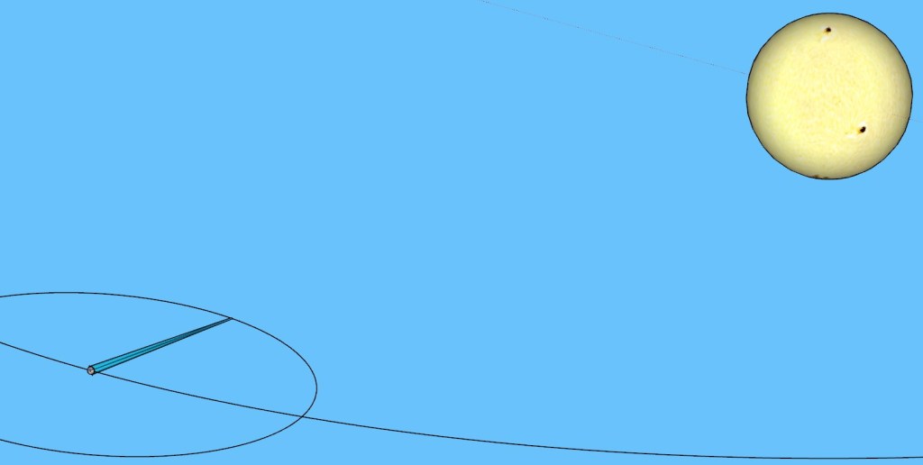Y aun así, este período no es un número exacto de días, por lo que la zona de sombra no coincidirá en la superficie terrestre, sino que se habrá desplazado una fracción de día.