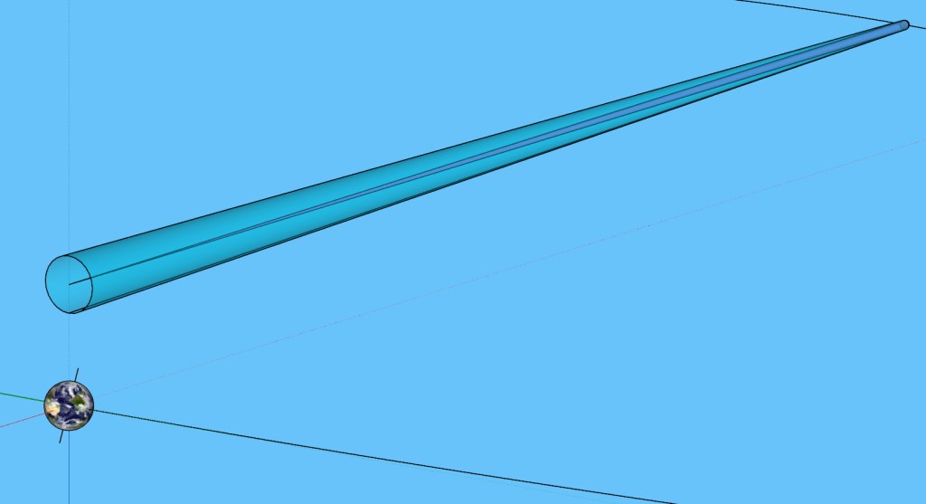 Esos 5° pueden no parecer un ángulo muy grande. Para hacerte una idea, estira el brazo derecho y junta el meñique con el pulgar, de modo que queden extendidos tres dedos (índice, corazón y anular). Si cierras un ojo, el ángulo aparente que abarcan esos tres dedos es aproximadamente de 5°.