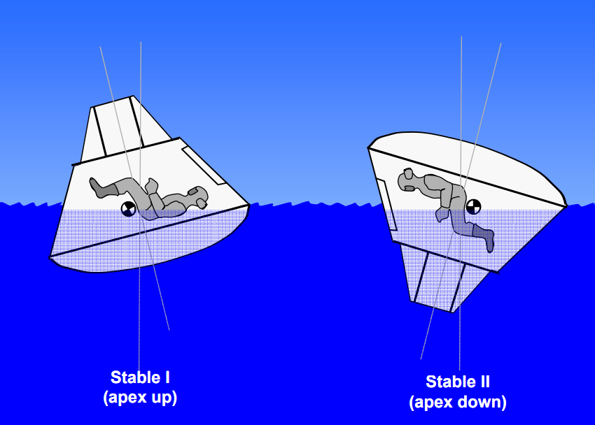 Para rematar la faena, la cápsula Apolo quedó en el agua en posición invertida. Los astronautas quedaron colgados de sus cinturones de seguridad bamboleandose por las olas del mar.