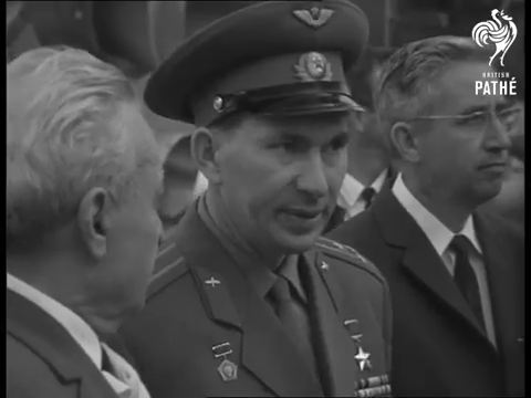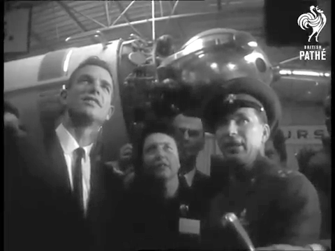 Para presentar la cápsula Vostok y cohete Semiorka se desplazño a París el cosmonauta Павел Иванович Беляев (Pavel Beliayev) comandante de la histórica misión Voskhod II en la que se produjo el primer paseo espacial con Алексе́й Архи́пович Лео́нов (Alexei Leonov).