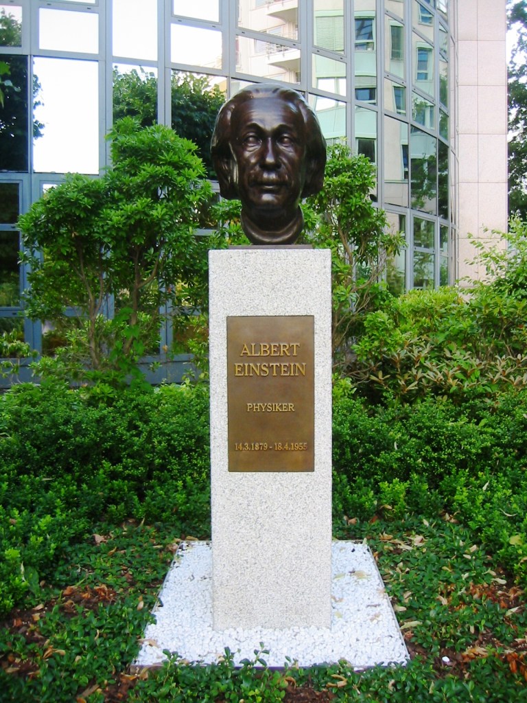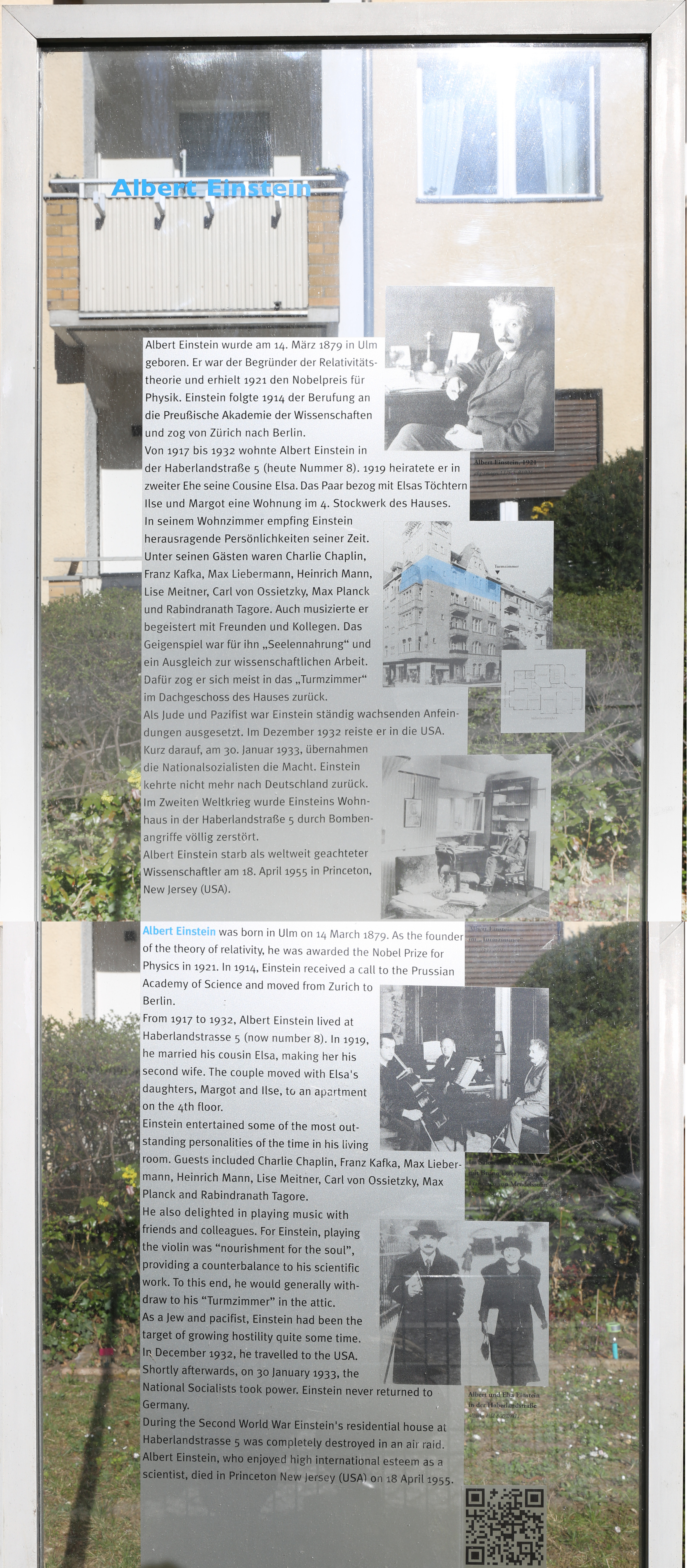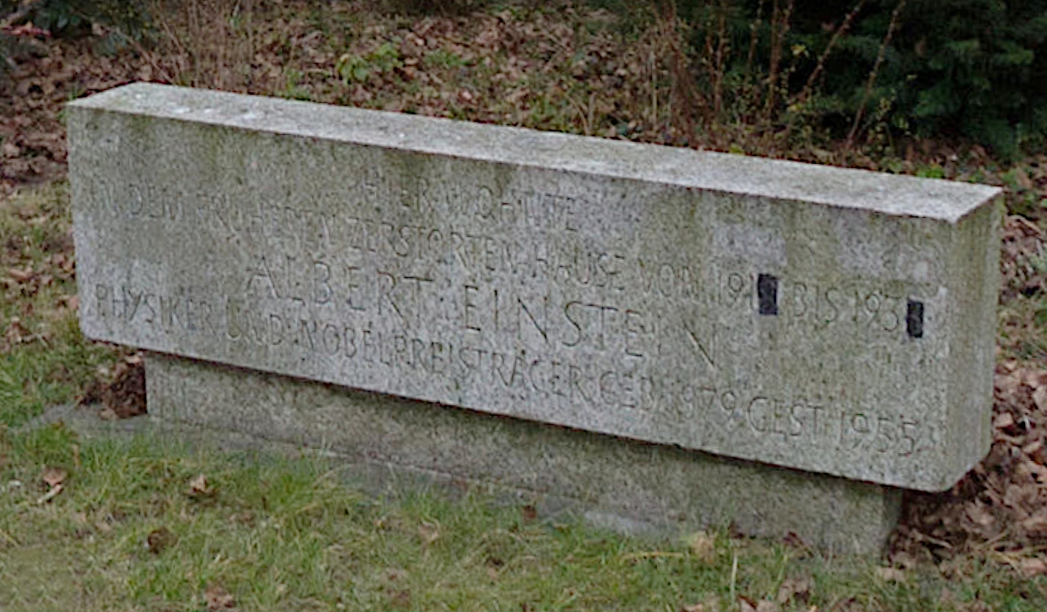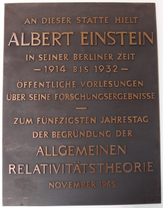 En la actualidad, en las inmediaciones de Haberlandstrasse 8, se puede ver la estela de la imagen anterior. Y es gracias a un español, Gregorio Ortega Coto. Gregorio es un entusiasta del legado de Einstein (como yo mismo, pero en serio). El Señor Ortega reside en uno de los apartamentos del edificio y en 2013 obtuvo los permisos necesarios para instalar la estela en el espacio público para lo que organizó un crowfunding con objeto de financiarla. He sido uno de esos turistas que han ido a fotografiarla y espero que Gregorio me viera desde la ventana. Gracias, Gregorio.