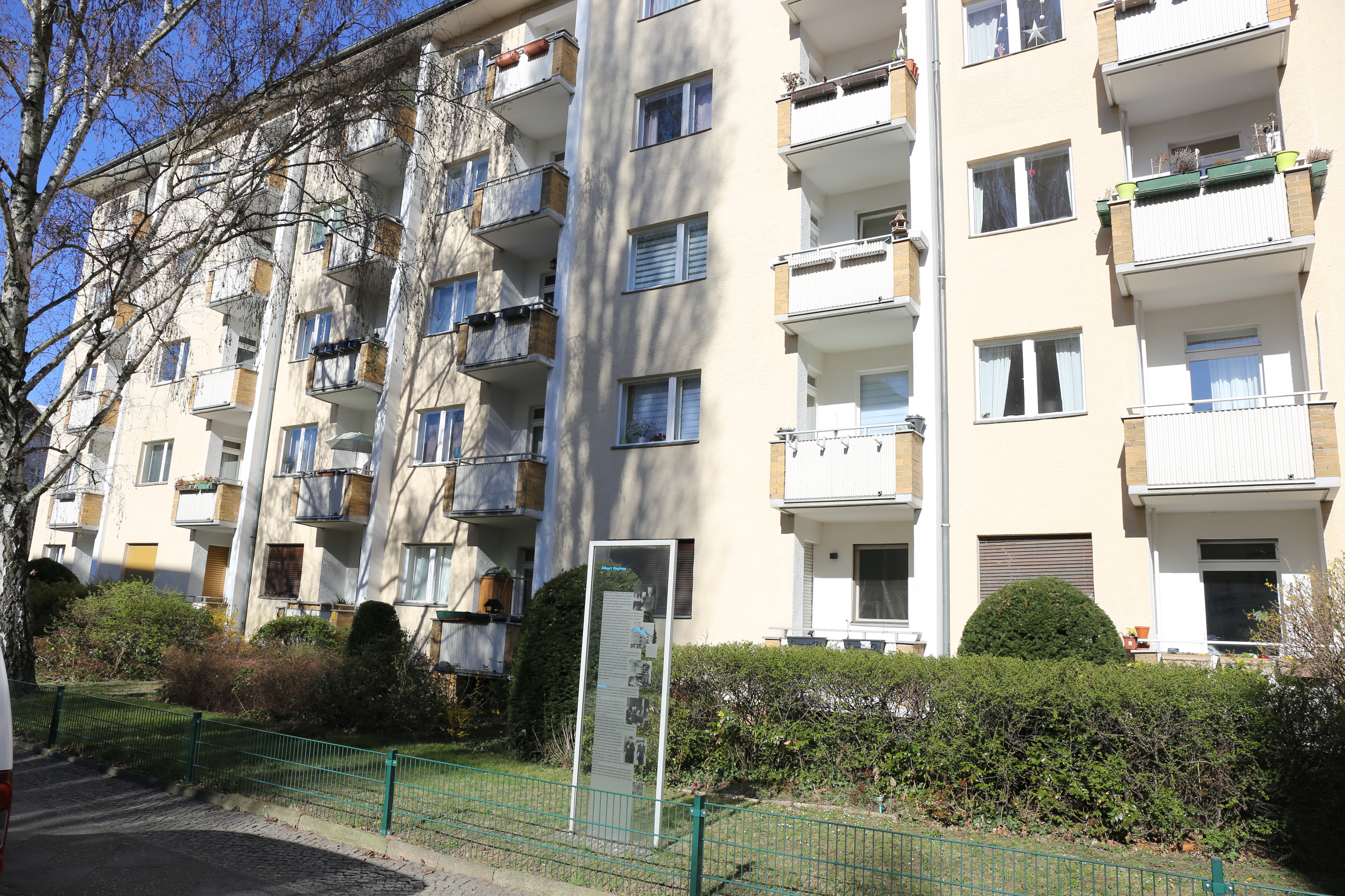 Einstein fue uno de los primeros inquilinos de este edificio que acababa de construirse. En la tercera planta disponía de un modesto apartamento de tres habitaciones según comenta en una carta a su hijo a principios de 1915. Incluso disfrutaba ya de teléfono, un lujo que empezaba a ser popular entre los berlineses acomodados.