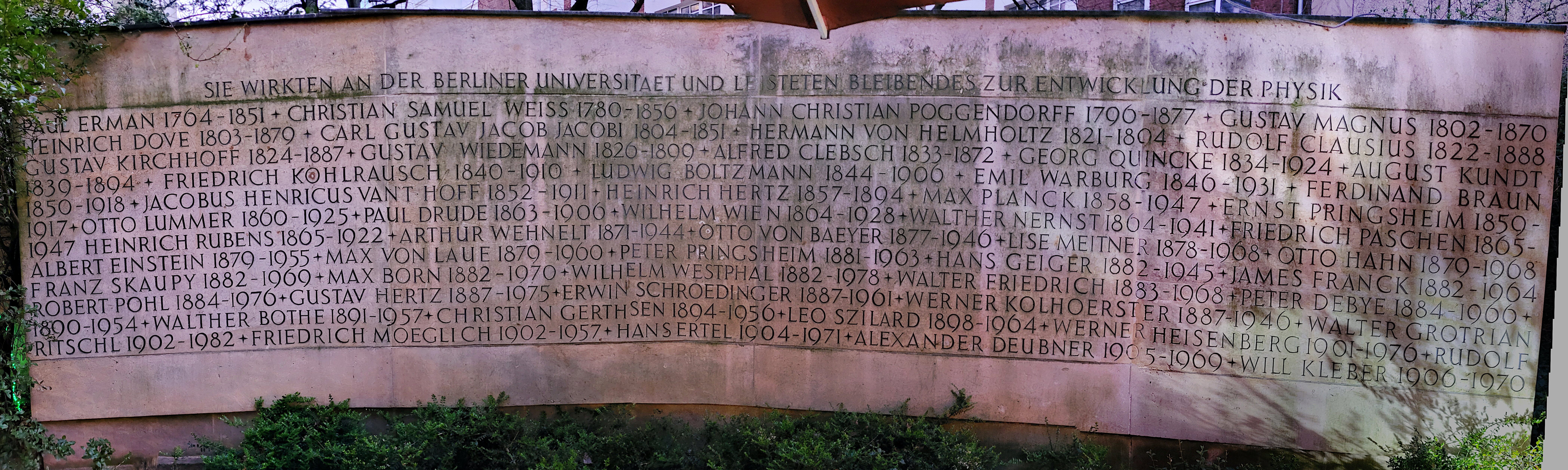 Hacer un listado grabado en piedra para homenajear a físicos y físicas que han realizado su labor investigadora en las universidades de una ciudad no es algo muy habitual en ningún país.