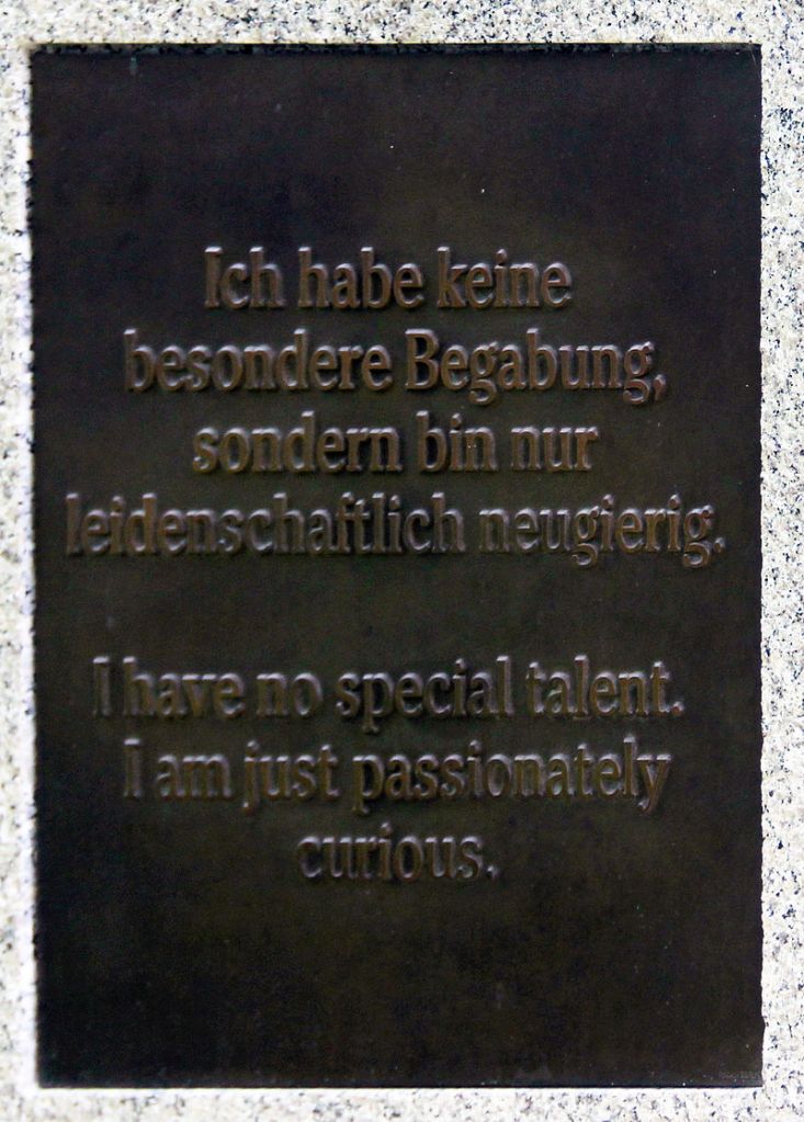 Dos citas de Einstein pueden encontrarse entre las placas conmemorativas que adornan el paseo