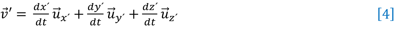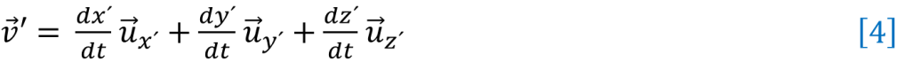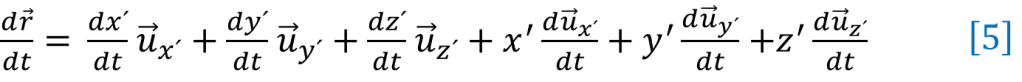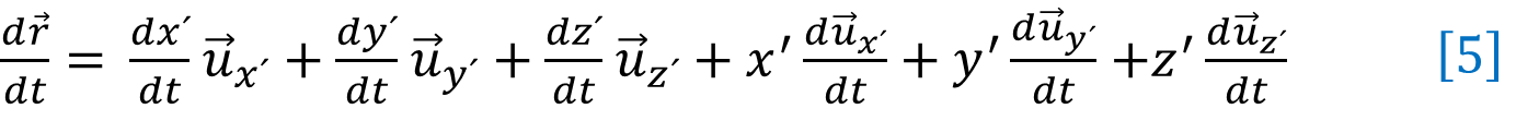 Para un observador en el sistema O los vectores unitarios del sistema O’ rotan (varían) por lo que si deriva la ecuación [3]