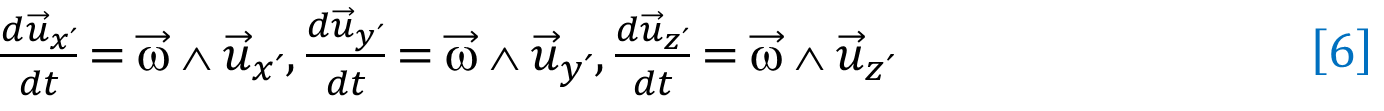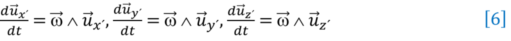 Los vectores (ux’ , uy’ , uz’) giran respecto a O con velocidad angular ω por lo que usando [0]