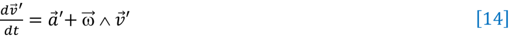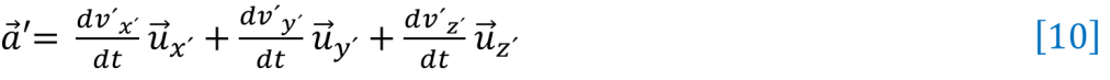 A partir de aquí vamos a obtener la aceleraciones observadas por cada observador (el del sistema inercial O y el del sistema no inercial O’)