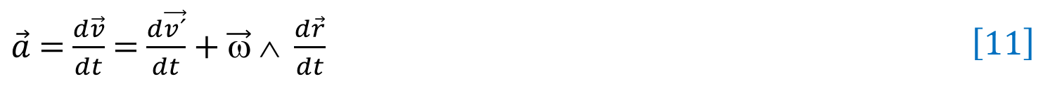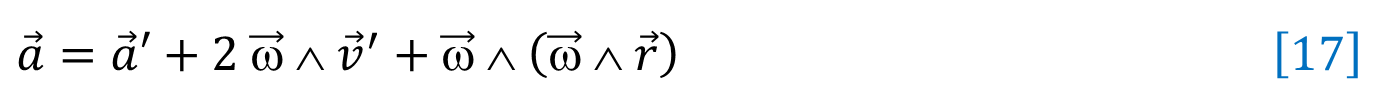 Esa aceleración aparece en cuerpos que se mueven en el sistema de referencia que gira (depende de v’) y puede interpretarse como originada por una fuerza que es perpendicular a la velocidad del objeto y la velocidad de rotación.