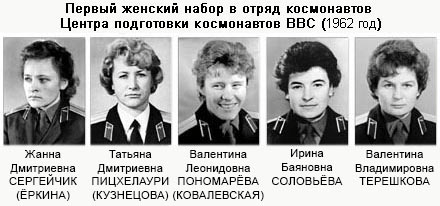 Tuvimos que esperar hasta 1987 para que las autoridades soviéticas, en plena era «Glasnost«, desvelaran el existencia y el nombre de las compañeras de entrenamiento de Valentina Bladimirovna Tereshkova. Ninguna de ellas pudo volar al espacio (aunque alguna estuvo cerca).