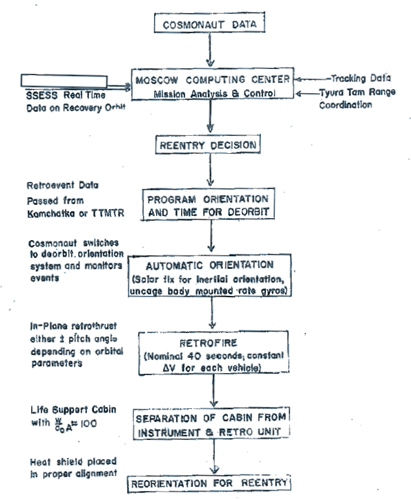 La reentrada de la nave se producía tras la decisión del centro de control de Moscú en función del cumplimiento de los objetivos de la misión y teniendo en cuenta los parámetros orbitales durante la inserción orbital.