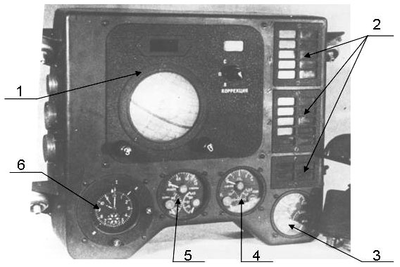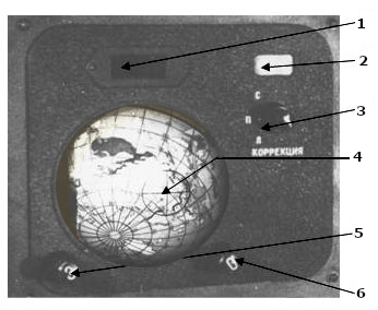 - Indicador de aterrizaje. Se encendía al activar el conmutador (Глобус) del panel de control a la posición aterrizaje;