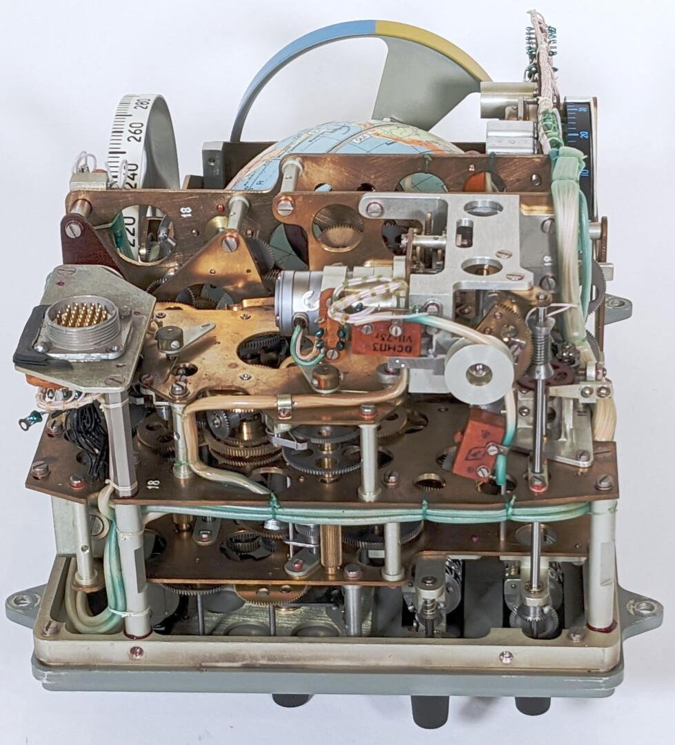 Este instrumento de navegación era un ordenador electromecánico analógico que utilizaba un complejo sistema de engranajes, levas y diferenciales para calcular la posición de la nave espacial.
