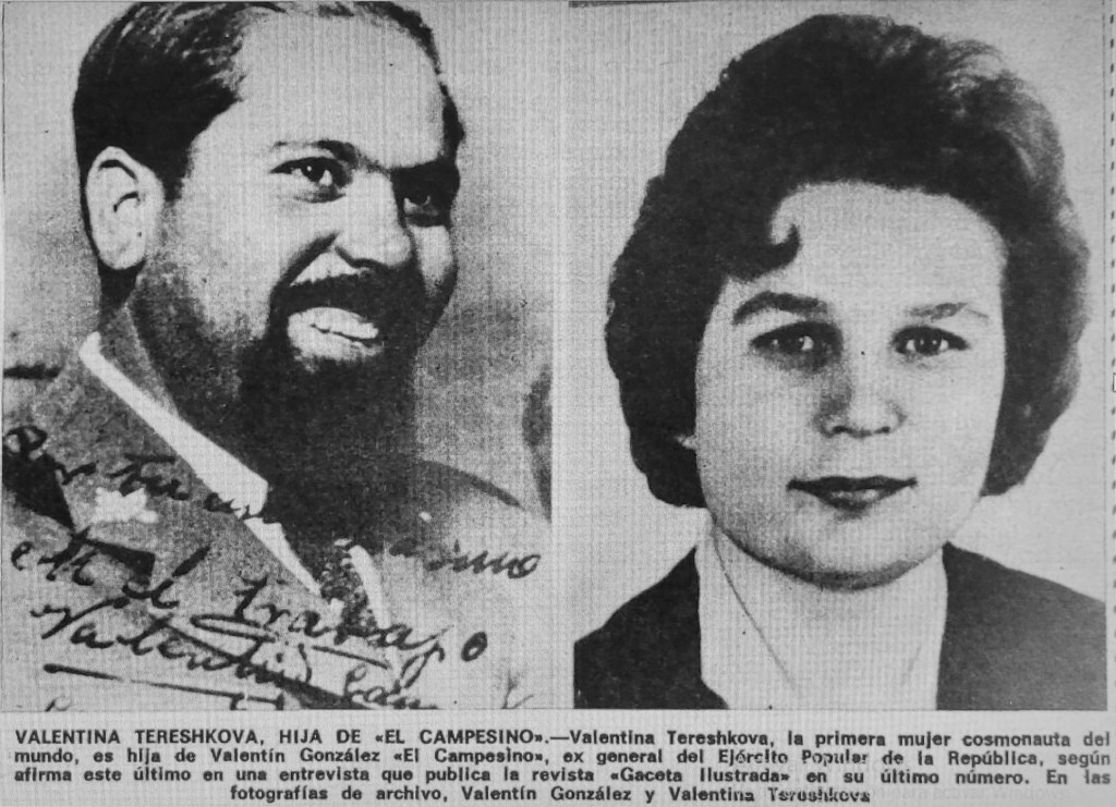 Una agencia de prensa afirmaba que Valentina era hija de Valentín González «El Campesino», un militar comunista español que tuvo que exiliarse tras la guerra civil al país de los soviets y parece que no sólo para leer a Lenin. En fin..