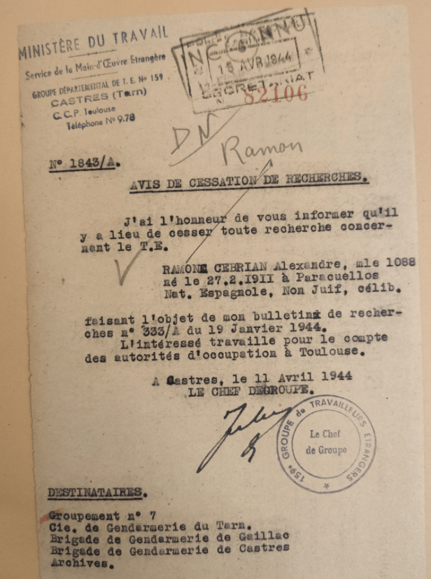 En el mismo libro, en la página 44, también aparece Alejandro Ramón Cebrián (de profesión agricultor) como exiliado en Gaillac, Francia.