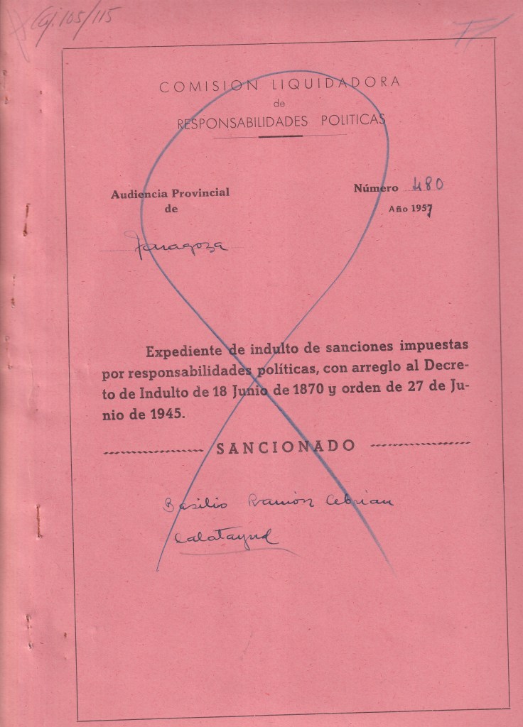 - Tribunal Nacional de Responsabilidades Políticas (Centro Documental de la Memoria Histórica). Signatura: 75/00105 | Calatayud (Zaragoza) | Indulto (1959).