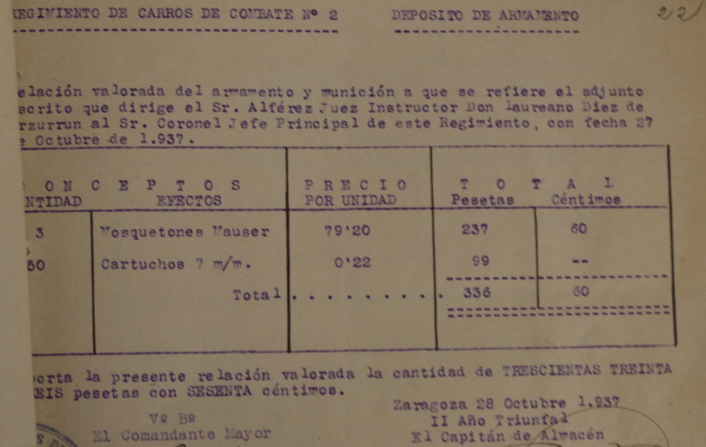 El 30 de Agosto de 1938 se fija la cuantía de la responsabilidad civil en 1.000 pesetas.