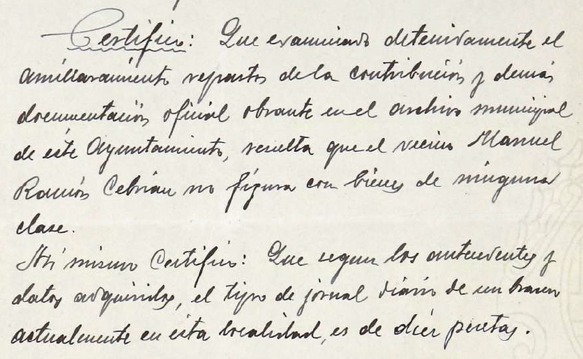 Aunque el patrimonio mobiliario de mi abuelo era de 94 céntimos de peseta en una cuenta (libreto de ahorro número 168) de la Caja de Ahorros y Monte de Piedad. De patrimonio inmobiliario ni hablamos (según escrito del secretario del Ayuntamiento de Calatayud en 17 de Septiembre de 1937).