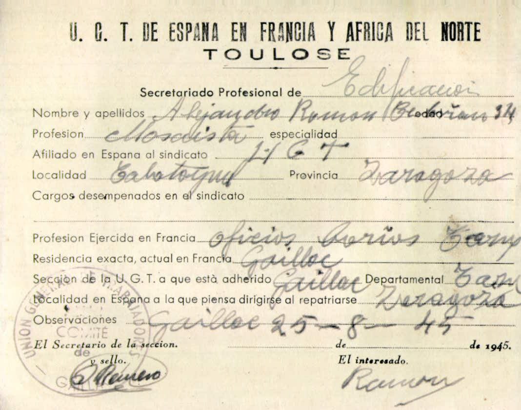 En el mismo libro, en la página 44, también aparece Alejandro Ramón Cebrián (de profesión agricultor) como exiliado en Gaillac, Francia.