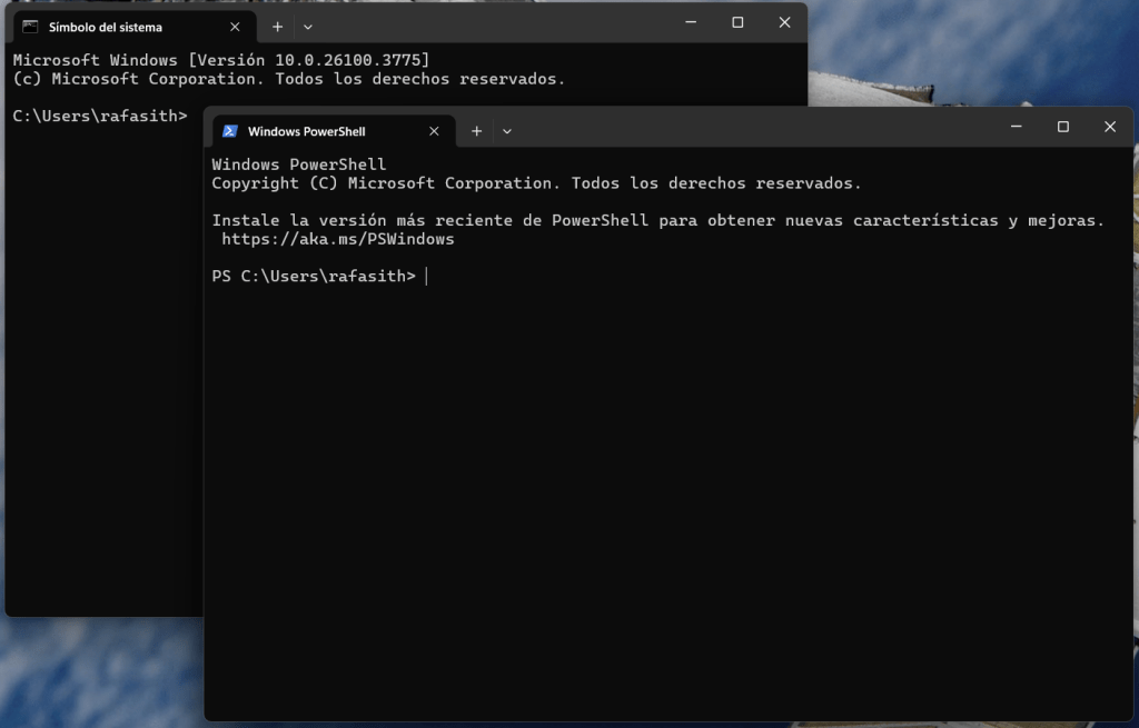 El aspecto de la antigua ventana de comandos y el de la nueva PowerShell es similar. Pero las mejoras son evidentes.