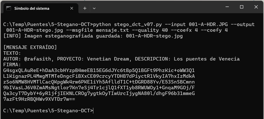 Habrás reconocido la definición de la matriz de cuantización ④. Es la que aplicaremos en la Luminancia del archivo JPG contenedor del mensaje.