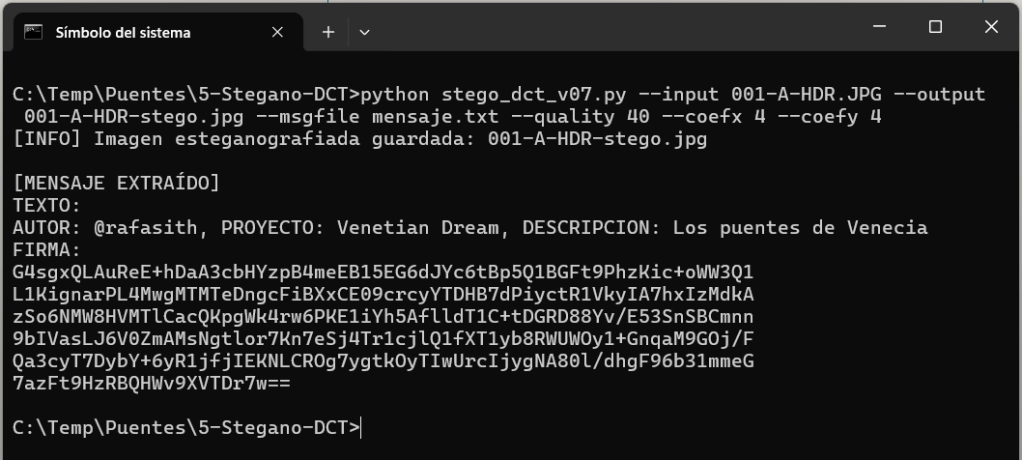 Todavía se puede apreciar que hay “algo raro” ¿verdad? Puedes jugar cambiando el coeficiente y la calidad de imagen para ver que en algunos pasa más desapercibida la información insertada.