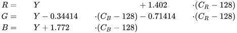 El paso del sistema RGB al de YCbCr se realiza mediante unas simples ecuaciones: