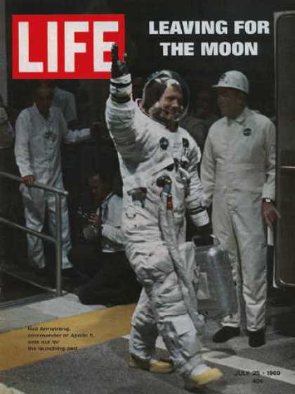 La segunda lleva el reportaje del lanzamiento del Apolo 11. Aunque se publicó cuando ya habían llegado a la superficie lunar.