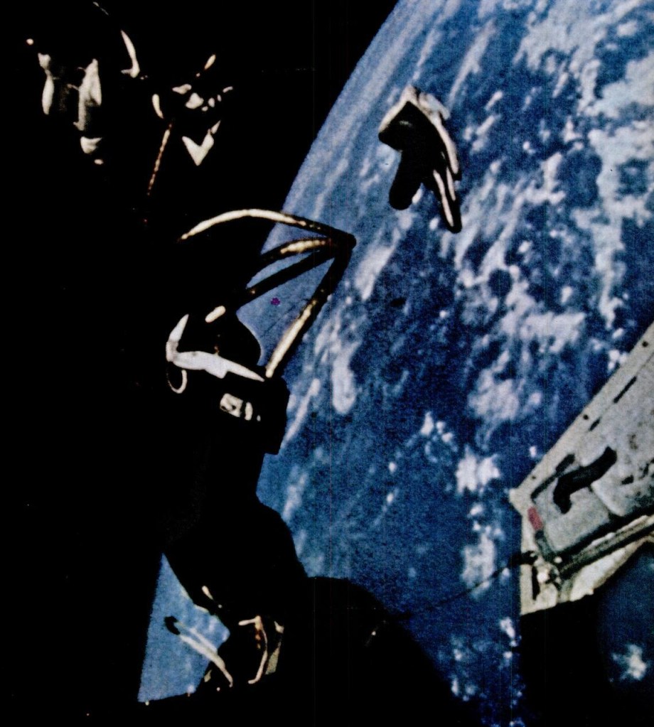 La segunda portada es una de esas fotografías que pasarán a la historia. El primer paseo espacial norteamericano realizado por Ed White en la misión Gemini 4.