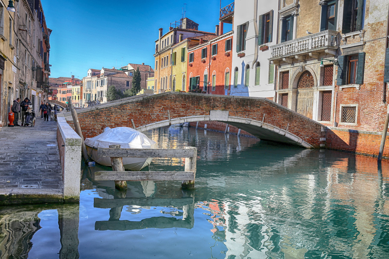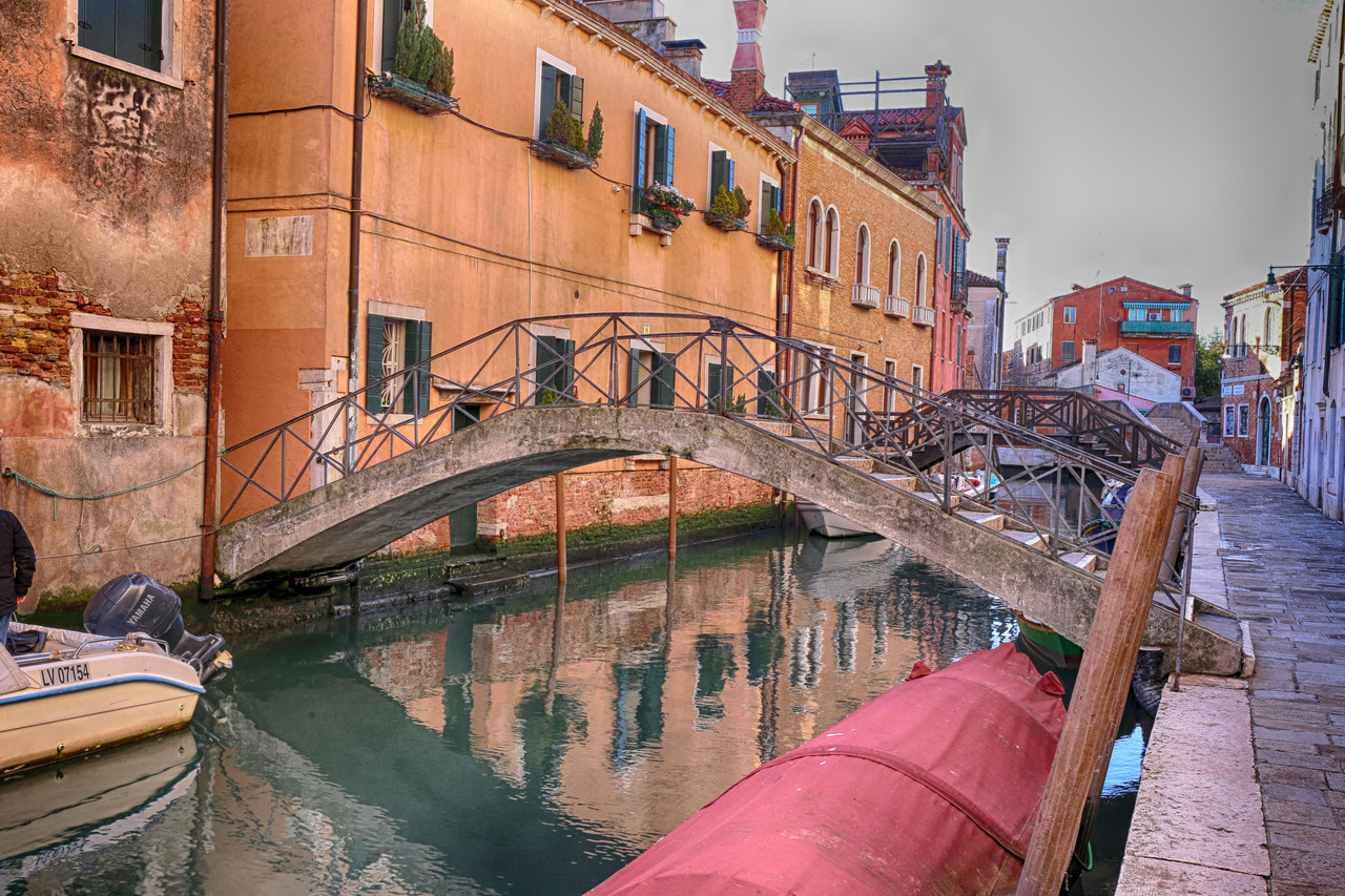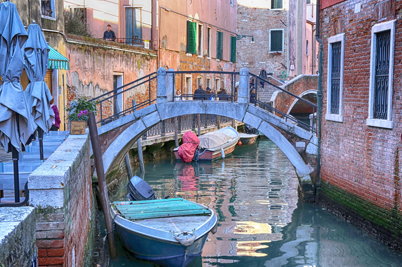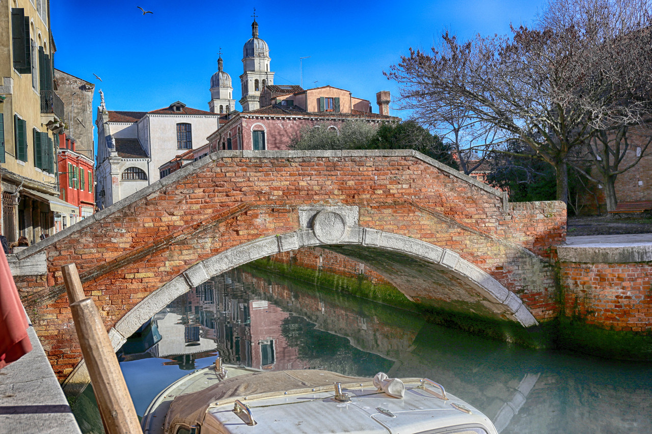 En este momento emprenderemos una auténtica maniobra marinera: como los pescadores que se adentran en aguas procelosas soltando sus artes, así haremos nosotros. Primero nos dirigiremos a un punto lejano, sin detenernos en los puentes que encontremos, y solo después, con calma, desandaremos el camino, deteniéndonos en cada uno para capturar sus imágenes. Al término de esta travesía nos aguarda uno de esos rincones secretos que hacen de Venecia un laberinto de maravillas ocultas.