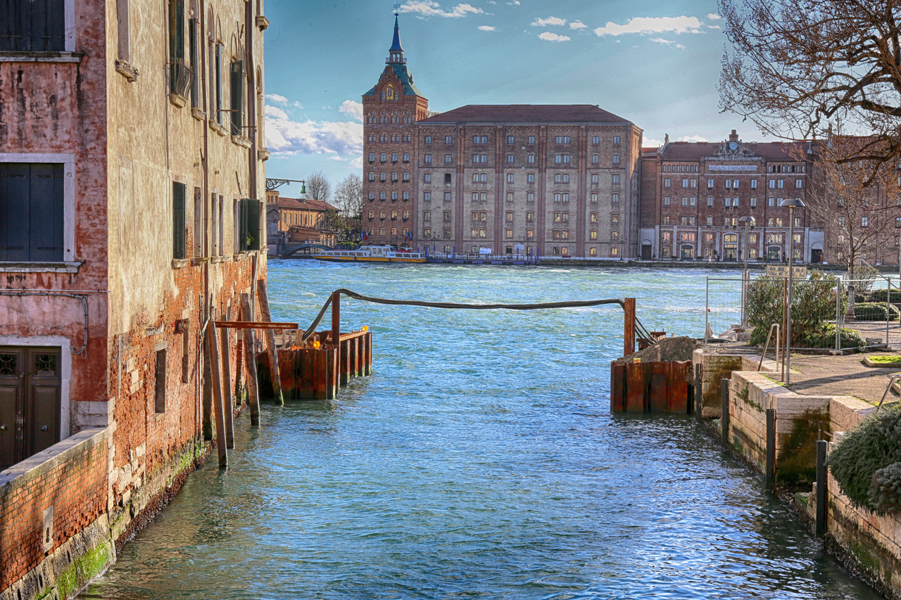 Desde este puente había previsto una fotografía del Molino Stucky y del Ponte Molin della Stazione Maritima, tal como había comprobado en mi meticuloso estudio previo del viaje. Pero, cuál no fue mi sorpresa al descubrir que allí no había puente: ¡Google me había jugado una mala pasada! Debo suponer que lo desmontaron para repararlo, o quizá simplemente le había llegado su hora. Los puentes, al fin y al cabo, están vivos… y, como todo ser vivo, también deben morir.