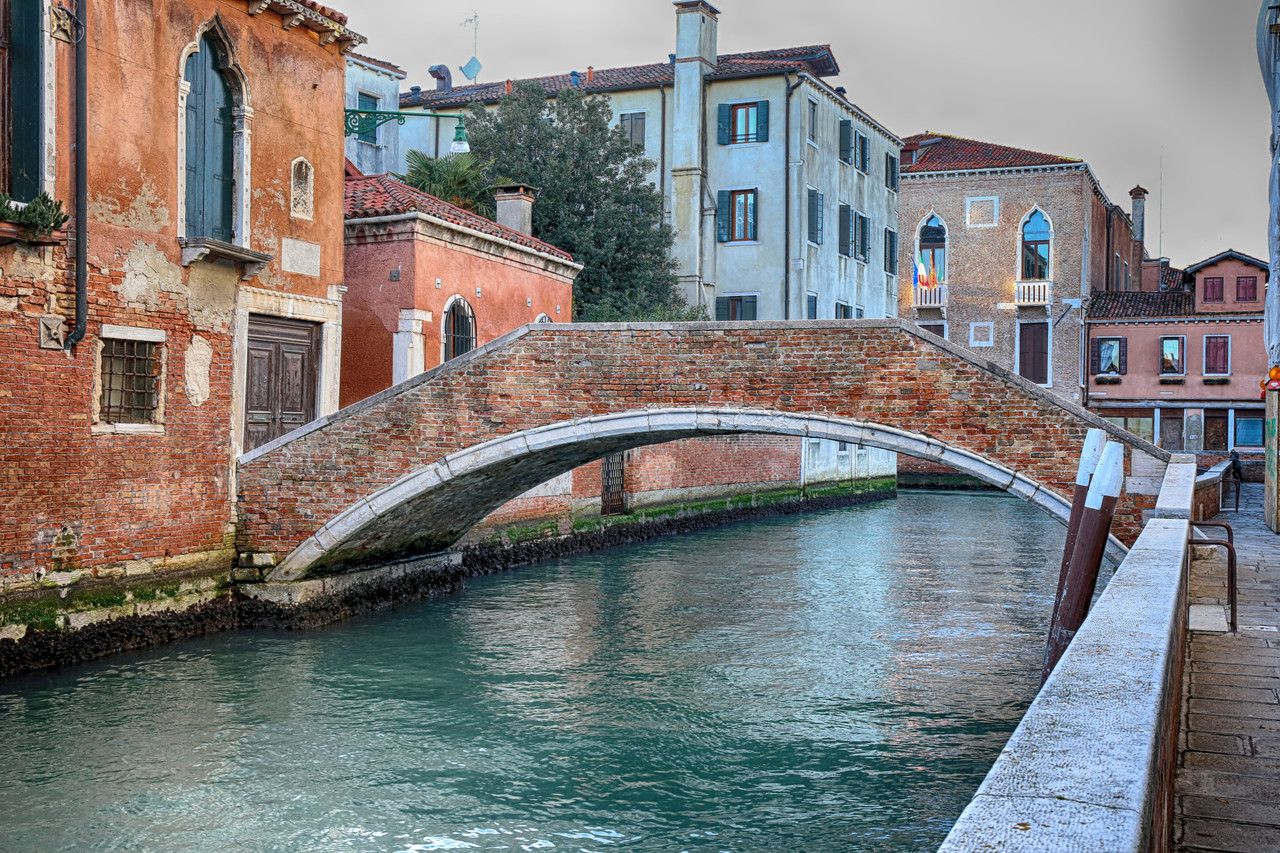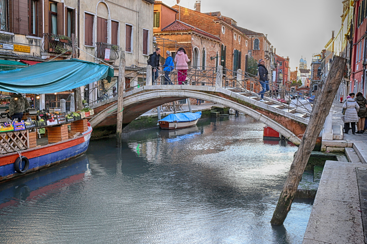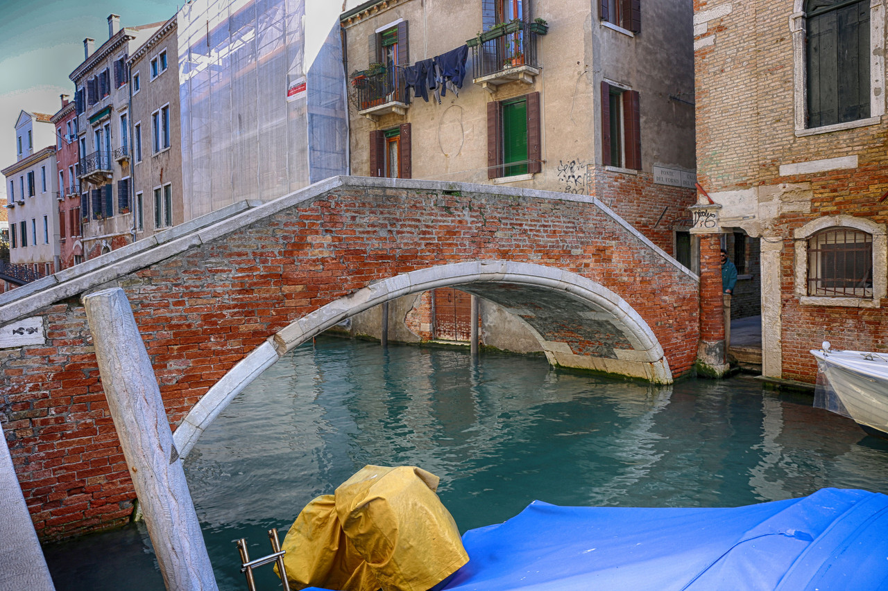 Ya te habrás dado cuenta de que este puente no se presta a una fotografía fácil: discurre pegado a la orilla del Río de Santa Margherita y no hay suelo firme al frente que permita tomar distancia. ¡Qué mala uva la de los venecianos, empeñados en levantar puentes que se resisten a ser fotografiados!