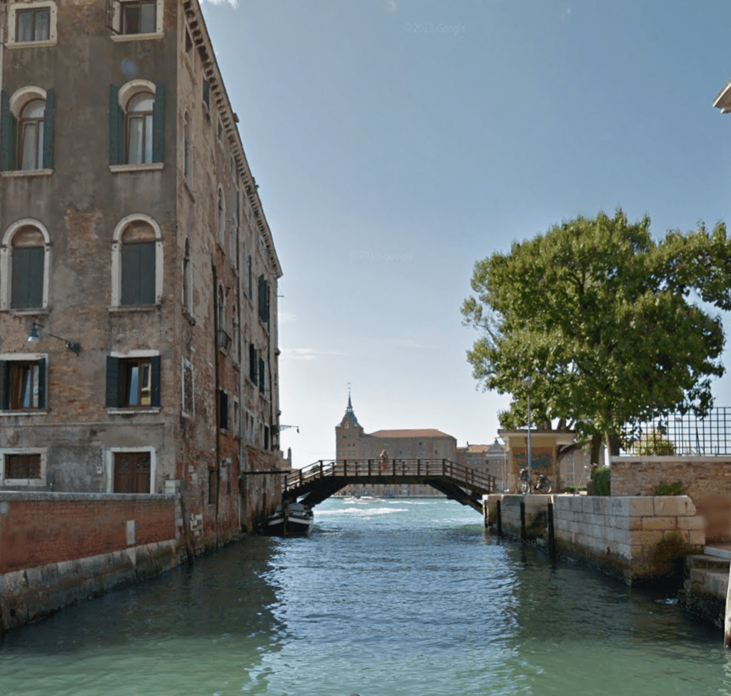 Partimos desde la Chiesa di Santa Maria della Carità y bordeamos su flanco izquierdo hasta alcanzar el Rio Terà Foscarini. Allí se abre, discreto, un angosto pasadizo —la Callesella Rota— que nos conduce a la Calle Nuova Sant’Agnese. Sin abandonar esta vía, el camino nos lleva hasta la Fondamenta Venier, donde se presenta la primera parada de nuestro itinerario: el Ponte de San Vio.