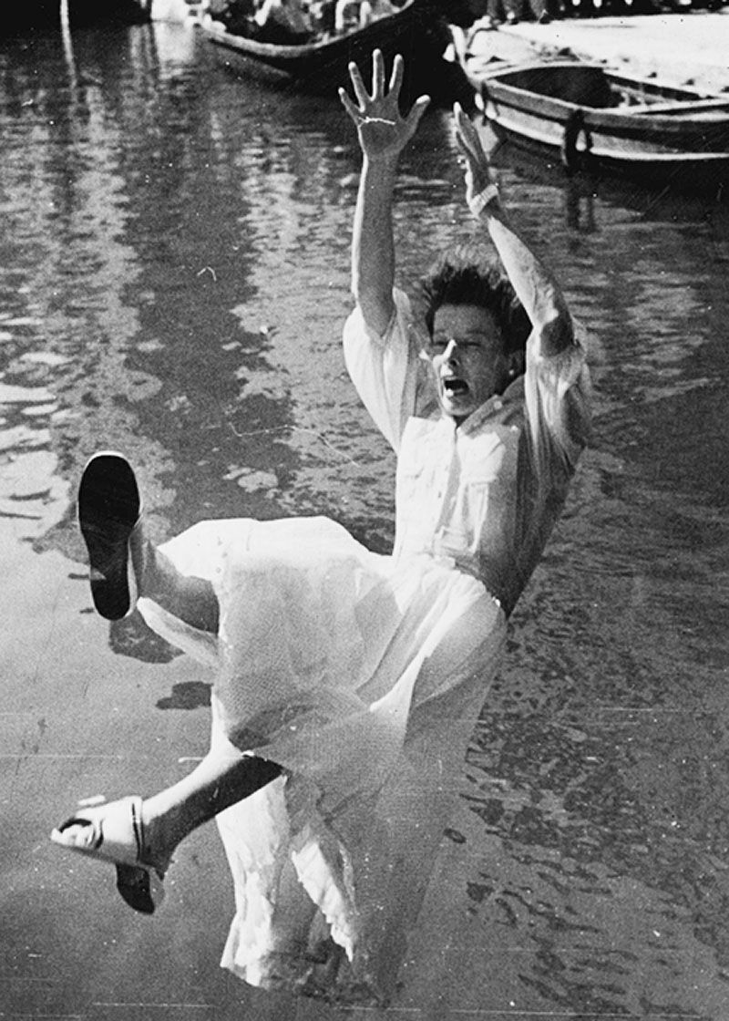 Primera pista: Katherine Hepburn, perdiendo el equilibrio y cayendo a las aguas del Río San Barnaba en Summertime, 1955.